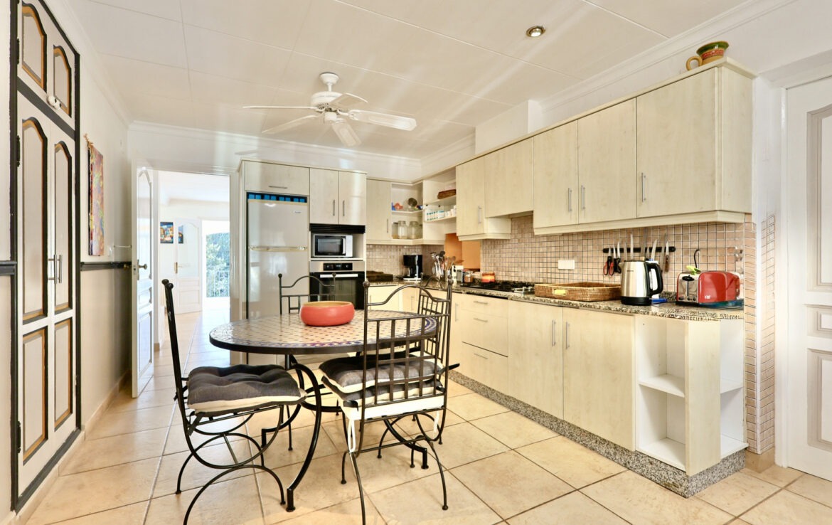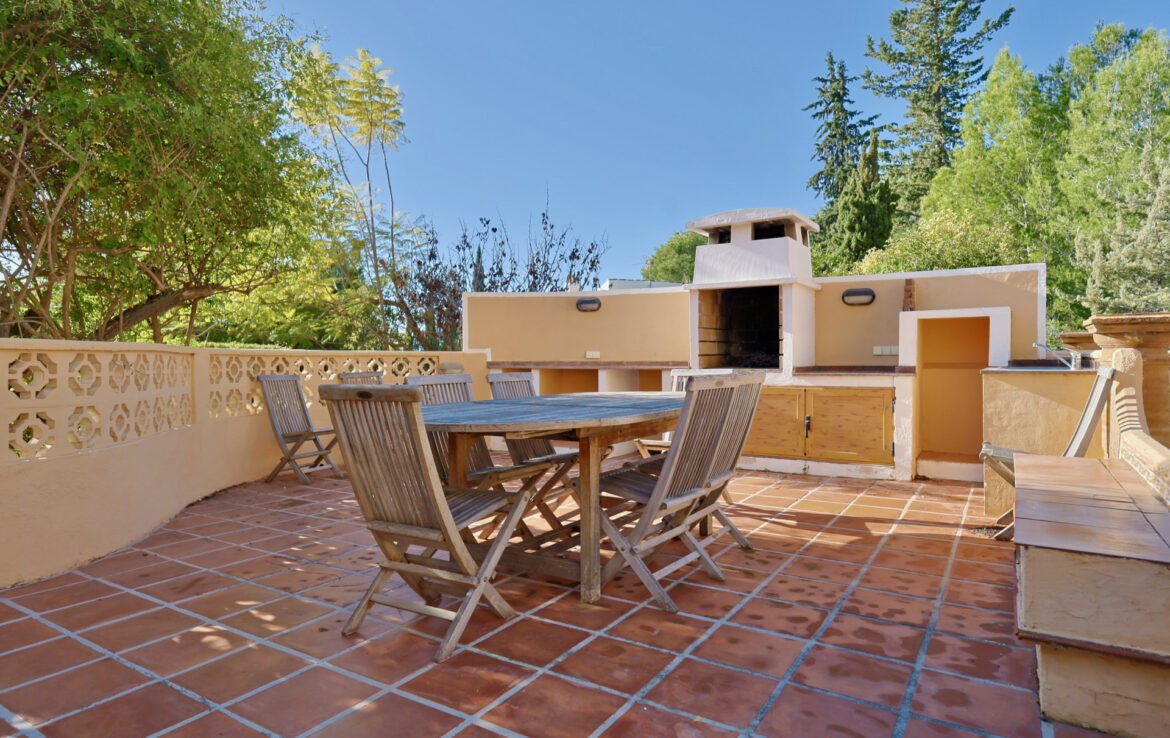 Outside, the villa boasts a Mediterranean garden, swimming pool, barbecue area and